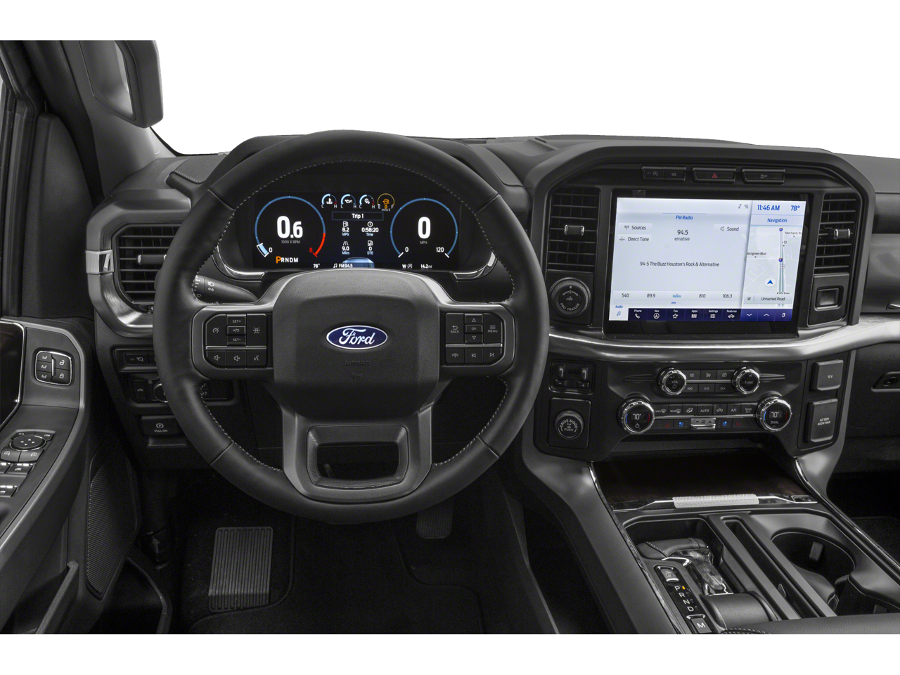 ENGINE: 3.5L POWERBOOST FULL-HYBRID V6 GVWR: 7,350 lbs Payload Package, Electronic Locking w/3.73 Axle Ratio, LARIAT SPORT APPEARANCE PACKAGE unique interior finish, Box Side Decals, Chrome Single-Tip Exhaust, Wheels: 18 6-Spoke Machined Aluminum, gloss black painted pockets, Accent-Color Angular Step Bars, Dark 2-Bar & 1 Minor Bar Style Grille, black surround and black mesh, Body-Color Front & Rear Bumpers, EQUIPMENT GROUP 501A MID Radio: B&O Sound System by Bang & Olufsen, HD radio and 8 speakers including subwoofer, Universal Garage Door Opener, Onboard 400W Outlet, Replaces two (2) front USB charge only ports, 360 DEGREE CAMERA trailer reverse guidance, FORD CO-PILOT360 ASSIST 2.0 Evasive Steering Assist, Intelligent Adaptive Cruise Control w/Stop & Go, lane centering, Speed Sign Recognition, Connected Built-In Navigation, Navigation services require SYNC4 and FordPass Connect (optional on select vehicles), complimentary connect service and the FordPass app (see FordPass Terms for details), Eligible vehicles receive a complimentary 90-day trial of navigation services that begins on the new vehicle warranty start date, Customers must unlock the navigation service trial by activating the eligible vehicle w/a FordPass member account, If not subscribed by the end of the complimentary period, the navigation service will terminate, Connected service and features depend on compatible AT&T network availability, Evolving technology/cellular.