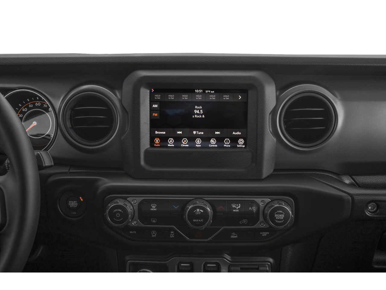 TRANSMISSION: 8-SPEED AUTOMATIC (850RE) Tip Start, Dana M200 Rear Axle, Selec-Speed (TM) Control, BLACK 3-PIECE HARD TOP Freedom Panel Storage Bag, Rear Window Defroster, Rear Window Wiper/Washer, No Soft Top, AIR CONDITIONING Google Android Auto®, R1234YF A/C Refrigerant, Integrated Center Stack Radio, 7.0 Touchscreen Display, Radio: Uconnect 4 w/7 Display, Apple CarPlay®, ENGINE: 3.6L V6 24V VVT ETORQUE UPG I 600 Amp Maintenance Free Battery, 48V Belt Starter Generator, GVWR: 5,050 lbs, Delete Alternator.