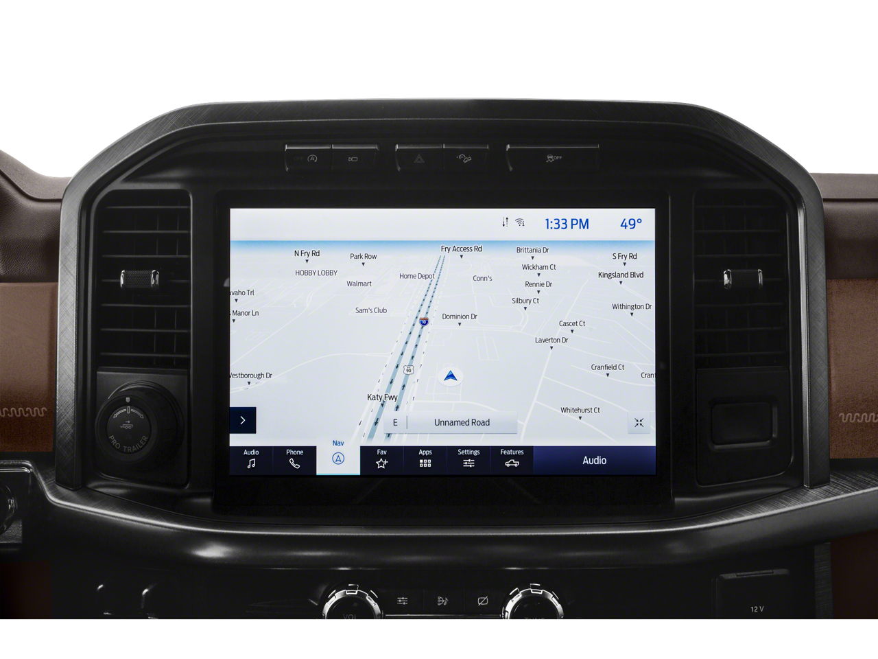 EQUIPMENT GROUP 601A HIGH Radio: B&O Unleashed Sound System by Bang & Olufsen, HD Radio and 18 speakers including subwoofer, Power-Deployable Running Boards, Replaces step bar, Bed Utility Package, BoxLink, 4 premium locking cleats, LED Box Lighting, Tailgate Step w/Tailgate Work Surface, Power Tailgate, Multi-Contour Driver & Passenger Seats, Active Motion, ENGINE: 3.5L POWERBOOST FULL-HYBRID V6 Electronic Locking w/3.73 Axle Ratio, KING RANCH CHROME APPEARANCE PACKAGE 2 chrome front tow hooks and tailgate applique, Chrome Door Handles w/Body-Color Strap, Front & Rear Chrome Bumpers, Bright Belt Moldings, Tires: 275/60R20 BSW Automatic Transmission, Wheels: 20 Chrome-Like PVD, King Ranch wheel ornament, Chrome Skull Caps on Exterior Mirrors, TWIN PANEL MOONROOF. Ford King Ranch with Stone Gray exterior and Java interior features a V6 Cylinder Engine with 400 HP at 6000 RPM*.