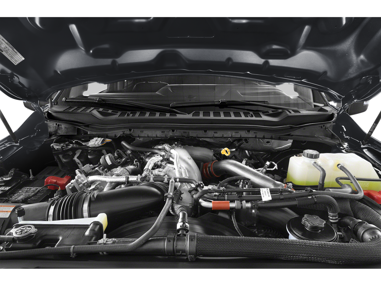 ENGINE: 6.7L 4V OHV POWER STROKE V8 TURBO DIESEL B20 manual push-button engine-exhaust braking, Operator Commanded Regeneration (OCR) and intelligent oil-life monitor, 250 Amp Alternator, 34 Gallon Fuel Tank, 3.31 Axle Ratio, Dual 68 AH/65 AGM Batteries, LARIAT ULTIMATE PACKAGE Ford Co-Pilot 360 2.0, rear view camera, reverse brake assist and reverse sensing system, Lane-Keeping System, lane-keeping alert, lane-keeping aid and driver alert, Pre-Collision Assist, Automatic Emergency Braking (AEB), pedestrian detection, forward collision warning, dynamic brake support and intersection assist, Post-Collision Braking, Automatic High Beam, BLIS w/Cross-Traffic Alert, trailer coverage, Upfitter Switches (6), Located in overhead console, 4-Way Adjustable Headrests, Tow Technology Package, Lane Keeping Assist, Pro Trailer Backup Assist, trailer reverse guidance, Intelligent Adaptive Cruise Control w/Stop-and-Go, speed sign recognition, Pro Trailer Hitch Assist, Wireless Charging Pad, Front Sensing System, Tailgate Step & Handle, Head-Up Display, TWIN PANEL POWER MOONROOF map lights and moonroof switches, ELECTRONIC-LOCKING W/3.31 AXLE RATIO, TRANSMISSION: TORQSHIFT 10-SPEED AUTOMATIC SelectShift and selectable drive modes: normal, eco, slippery roads, tow/haul and off-road (STD). Ford LARIAT with Agate Black exterior and Black Onyx interior features a 8 Cylinder Engine with 475 HP at 2600 RPM*.