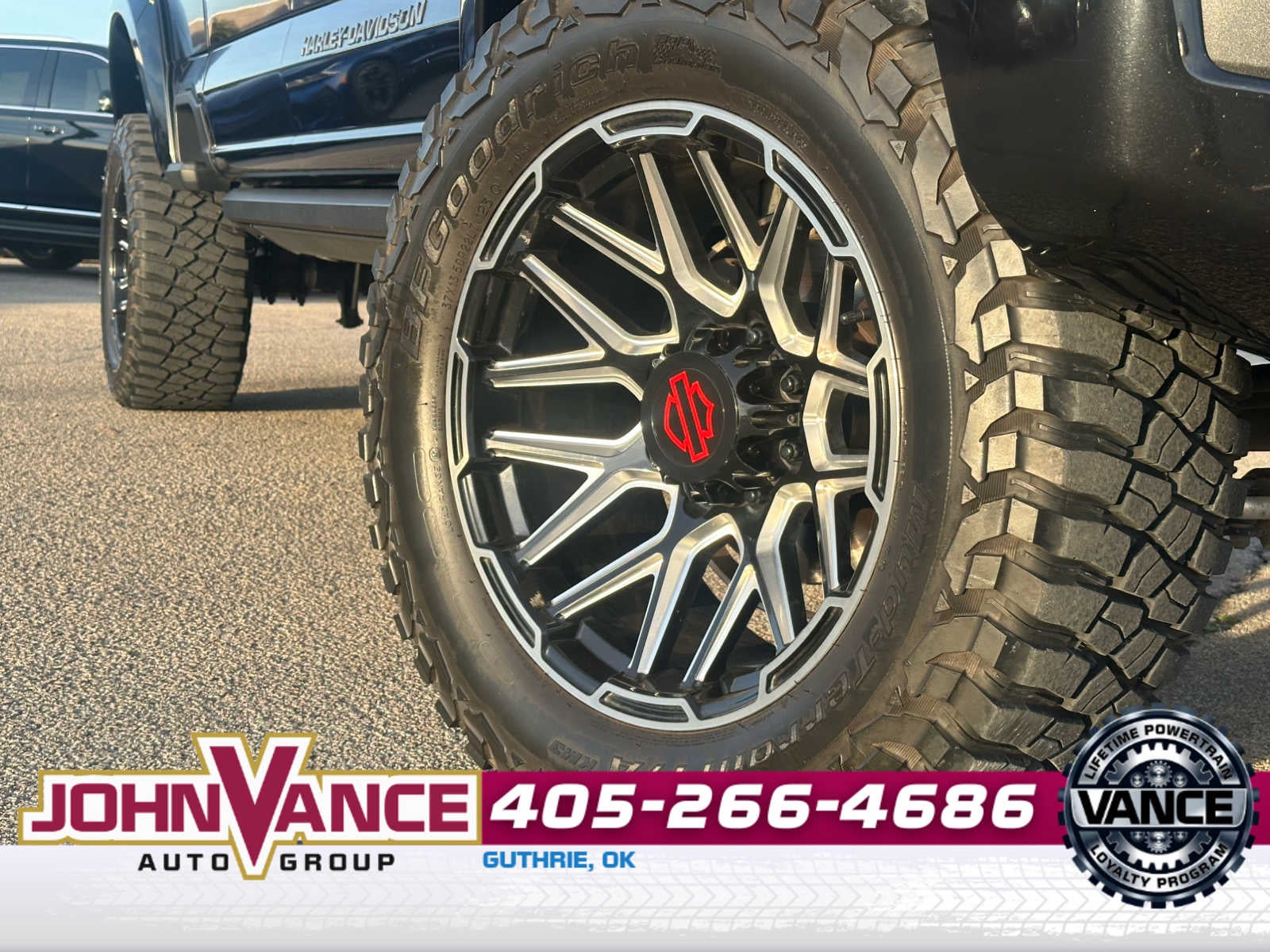 Factory Upfit from Tuscany6.7L Power Stroke Turbo Diesel Exclusive BDS Suspension Lift System FOX 2.0 Performance-Tuned Shocks FOX Dual Steering Stabilizers 37 BFGoodrich KM3 All-Terrain Tires 22 Harley-Davidson Fatboy Black & Milled Wheels Full system recalibration for proper drivabilityFull Replacement Functional Ram-Air Hood (Raptor-style insert) Custom Honeycomb Mesh Grille with Accent Color Integrated LED Light Bar in Front Bumper Custom Front Bumper Cover w/ Skid Plate Rear Bumper Covers Power Running Boards w/ Rock Guard Trim Custom Painted Fender Flares & Vents w/ Bar & Shield Logo Dual Billet Aluminum Exhaust Tips w/ Orange Accents Harley-Davidson Door Badging & Tailgate Cladding Carpeted Bed Rug Liner Painted & Embossed Tonneau CoverCustom Leather Seating w/ Orange Diamond Stitching Numbered Harley-Davidson Console Emblem Piano Black Accented Dash & Trim Billet Racing Pedals w/ Bar & Shield Logo Branded Floor Mats & Door Sills Stainless Steel Harley-Davidson Gauges