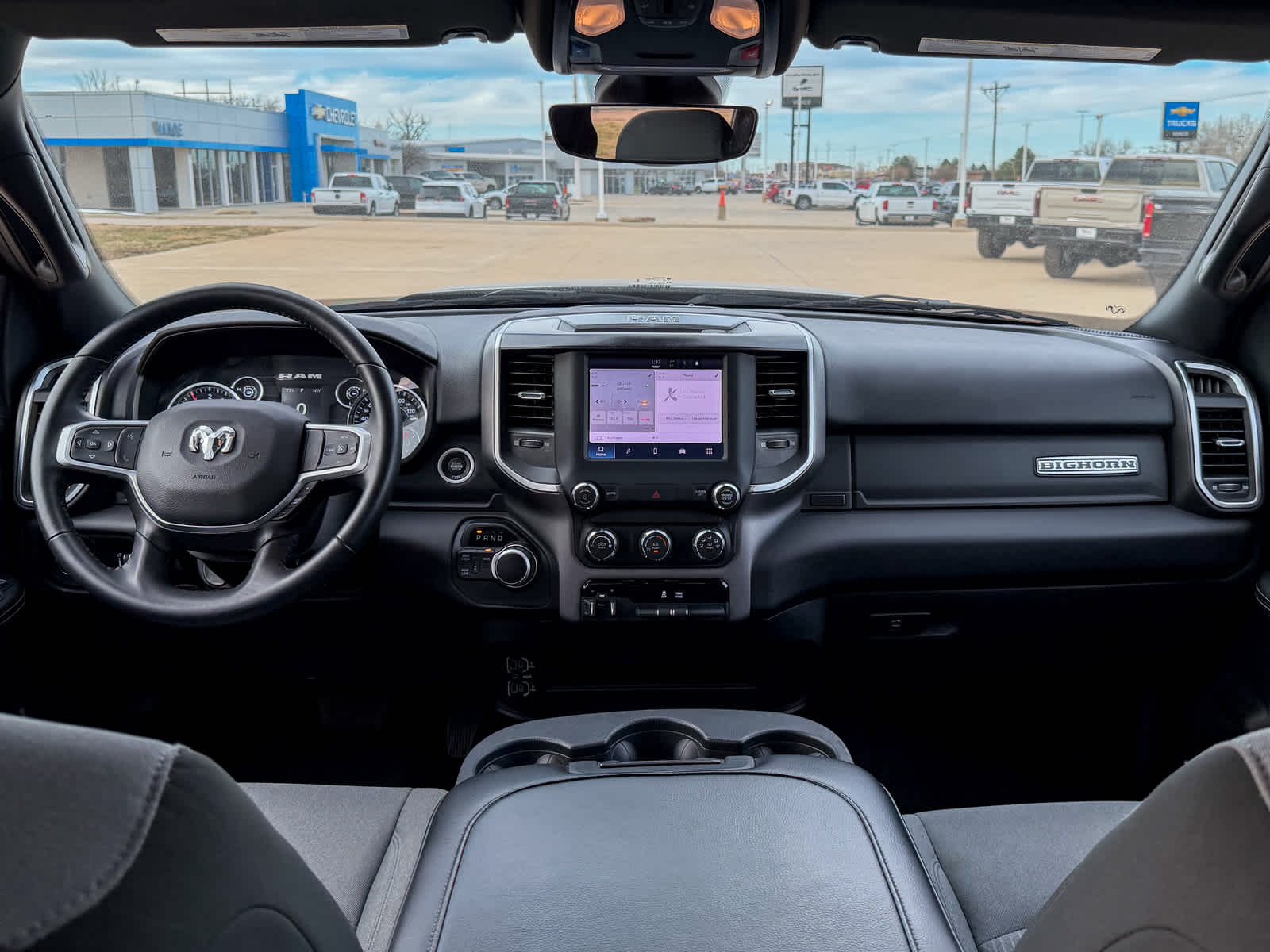 Storage Tray, Rear 60/40 Folding Seat, Front Armrest w/Cupholders, Remote USB Port - Charge Only, Front Center Seat Cushion Storage, Manual Adjust 4-Way Front Passenger Seat, Power Adjust 8-Way Driver Seat, Front Seat Back Map Pockets, Power 2-Way Driver Lumbar Adjust, MOPAR Spray In Bedliner, LED Bed Lighting, MOPAR Deployable Bed Step, CHROME FLAT CAB-LENGTH SIDE STEPS, 9 ALPINE SPEAKERS W/SUBWOOFER, ANTI-SPIN DIFFERENTIAL REAR AXLE, DIAMOND BLACK CRYSTAL PEARLCOAT, Transfer Case Skid Plate Shield, Tow Hooks, Engine: 6.4L V8 Heavy Duty HEMI MDS, Transmission: 8-Speed Auto (8HP75-LCV), Google Android Auto®, For Details, Visit DriveUconnect.com, For More Info, Call 800-643-2112, Leather Wrapped Steering Wheel, Rear Dome w/On/Off Switch Lamp, Front Fog Lamps, Glove Box Lamp, Auto Power-Folding Mirrors, Footwell Courtesy Lamp, 4G LTE Wi-Fi Hot Spot, Mirror Running Lights, Radio: Uconnect 5 W w/8.4" Display, 8.4" Touchscreen Display, Foam Bottle Insert (Door Trim Panel), Wheels: 18" x 8.0" Polished Aluminum, Apple CarPlay®, Big Horn IP Badge, Power Adjustable Convex Aux Mirrors, Forward & Reverse Utility Lights, Locking Lower Glove Box, Selectable Tire Fill Alert, SiriusXM Satellite Radio, Power Heated Fold Telescope Mirrors, Exterior Mirrors w/Supplemental Signals, Steering Wheel Mounted Audio Controls, Exterior Mirrors Courtesy Lamps, Dual Glove Boxes, 2nd Row In Floor, (STD), (STD), (STD), RADIO: UCONNECT 5 W W/8.4" DISPLAY.