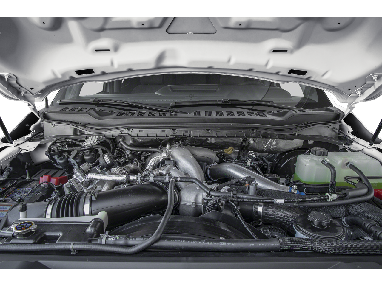 ENGINE: 6.7L 4V OHV POWER STROKE V8 TURBO DIESEL B20 manual push-button engine-exhaust braking and Operator Commanded Regeneration (OCR), 48 Gallon Fuel Tank, 3.55 Axle Ratio, Dual AGM 68 AH Battery, WHEELS: 17 FORGED POLISHED ALUMINUM bright hub covers/center ornaments (4 aluminum outer and 2 steel inner), PLATFORM RUNNING BOARDS, LIMITED SLIP W/3.55 AXLE RATIO, REMOTE START SYSTEM, DEFROST W/FIXED & PRIVACY GLASS, TRANSMISSION: TORQSHIFT 10-SPEED AUTOMATIC SelectShift and selectable drive modes: normal, eco, slippery roads, tow/haul and off-road.